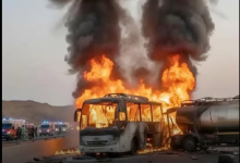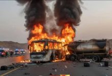 مصرع 4 أشخاص وإصابة خامس في حادث إنقلاب شاحنة على سيارة