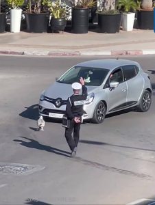 قام شرطي مرور فمدينة الجديدة يسهر على السير بتقاطع مروري بإعطاء إشارة باليد لسيارة خفيفة من نوع “رونو كليو” كانت قادمة من احد الشوارع بالتمهل والتوقف لفسح المجال لطائر النورس الذي كان بصدد عبور التقاطع المذكور.