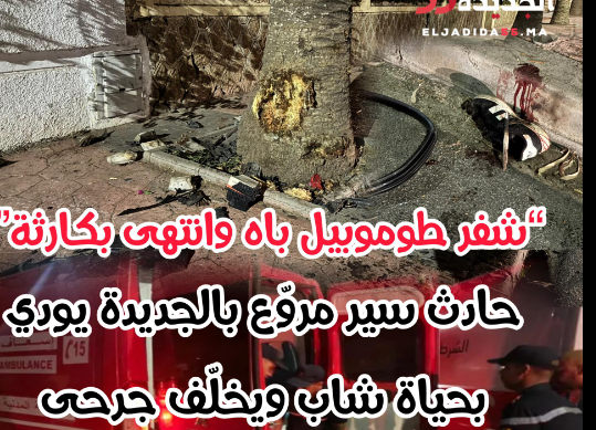 شهدت مدينة الجديدة حادثة سير خطيرة وقعت بالقرب من “بارك سبيني”، أسفرت عن وفاة شاب في مقتبل العمر وإصابة أربعة آخرين، ثلاثة منهم في حالة صحية حرجة.