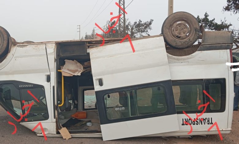 اشتوكةايت باها حادثة سير خطيرة إثر اصطدام قوي بين سيارة من نوع “بيكوب” مخصصة لنقل المستخدمين وحافلة صغيرة (ميني بيس) لنقل المستخدمين