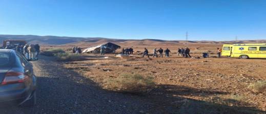 انقلاب حافلة لنقل المهاجرين السريين يسفر عن إصابة قائد وعنصرين من القوات المساعدة