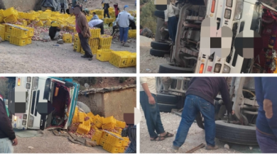 انقلاب شاحنة محملة بفاكهة التفاح قادمة لبني ملال و نجاة سائقها بأعجوبة