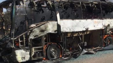 . ألسنة النيران تلتهم حافلة ركاب بشكل كامل بضواحي تاوريرت