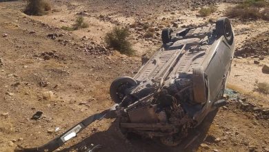 حادثة انقلاب سيارة بالطريق الجهوية بين تازارين والنقوب بإقليم زاكورة