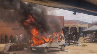 حريق هائل يلتهم سيارة بالسوق الأسبوعي في أيت ميلك!