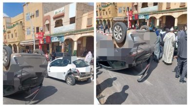 انقلاب سيارة يتسبب في صدم سيارة و نجاة ركابها بأعجوبة