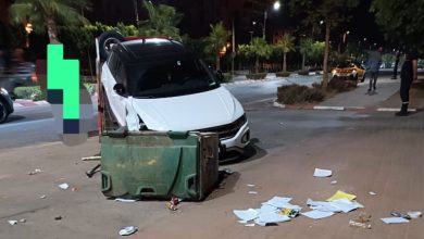 سيارة خفيفة يفقد سائقها السيطرة عليها ..تصطدم بحاوية للنفايات ببني ملال