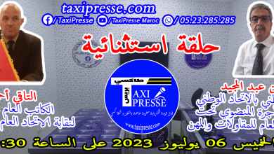 ترقبوا حلقة مباشرة وبدون لغة خشب على طاكسي بريس تيفي يوم الخميس 06 يويوليوز 2023 ابتداء من الساعة الثامنة و النصف ليلا مع كل من السيد المسؤول الوطني عبد المجيد مالحين والكاتب الوطني السيد احمد التاقي