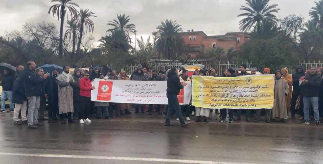 سائقو سيارات الأجرة الكبيرة بمراكش يُلوّحون بالإضراب احتجاجاً على “تعديات النقل السياحي” بمنطقة النخيل