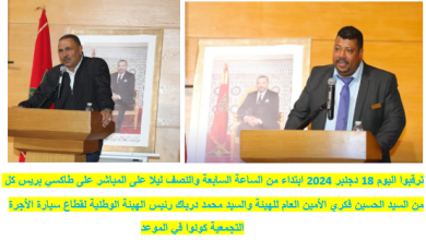 نظم التنسيق الجهوي لنقابات مهنيي سيارات الاجرة بصنفيها بجهة طنجة تطوان الحسيمة وقفة احتجاجية صباح يوم 18 دجنبر 2024 بمدنة…