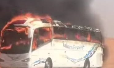 حريق ينشب بحافلة للنقل العمومي بين الطريق الوطنية الرابطة كلميم و طانطان لولا الالطاف الالهية لكانت خسائر في الارواح الحمد…
