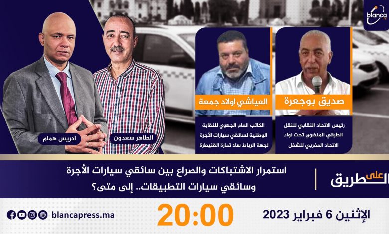 عنوان الحلقة : استمرار الاشتباكات والصراع بين سائقي سيارات الأجرة وسائقي سيارات التطبيقات.. إلى متى؟ من اعداد وتقديم إدريس همام بمشاركة صديق بوجعرة رئيس الاتحاد النقابي للنقل الطرقي المنضوي تحت لواء الاتحاد المغربي الشغل و كذا العياشي اولاد جمعة