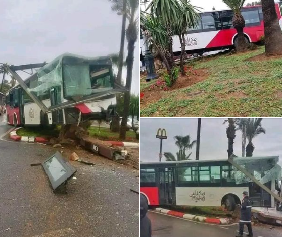 اصطدام حافلة للنقل الحضري بلوحة اشهارية يرسل 19 شخصا الى مستعجلات مكناس