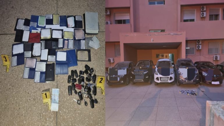 وقد تم تنفيذ هذه العملية الأمنية بشكل متزامن في أماكن مختلفة بمدينة بني ملال، حيث أسفرت إجراءات الضبط والتفتيش المنجزة في هذه القضية عن حجز تسعة سيارات من مختلف الأنواع والفئات ودراجة نارية تجري الأبحاث والخبرات التقنية للتحقق من مصدرها وقانونيتها، علاوة على هواتف نقالة ومبالغ مالية يشتبه في كونها من عائدات هذا النشاط الإجرامي.