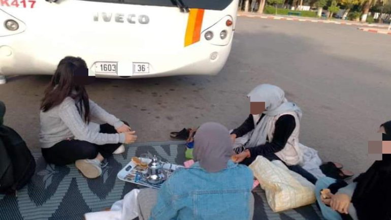 الطلبة والطالبات ديال تادلة دايرين اعتصام ومسيرة احتجاجية تايطالبو فيها بزيادة عدد الطوبيسات