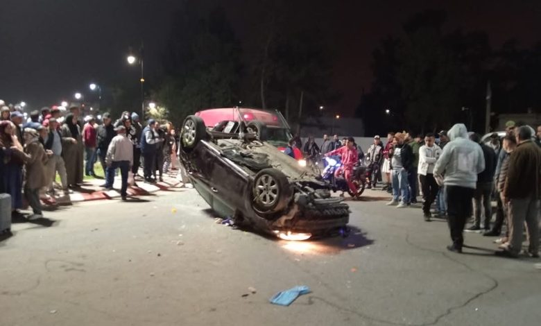 انقلبت سيارة بعد اصطدامها بالمدار الطرفي المجاور لمحطة طوطال بشارع محمد السادس بعين عودة و تجمع كبير للمواطنين حولها و السائق امرأة وابنتها نسال الله السلامة للجميع.