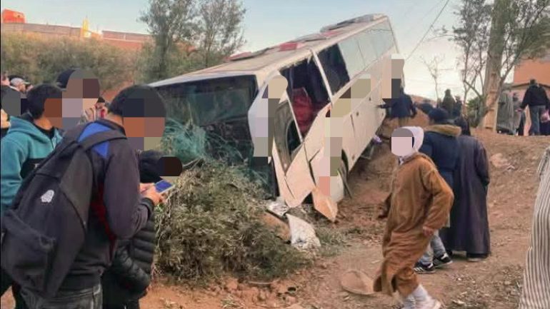وقعت اليوم السبت حادثة سير خطيرة بفم الجمعة إقليم أزيلال، حيث فقد سائق حافلة لنقل المسافرين السيطرة على المقود، وانقلبت به بجانب الطريق، مما تسبب في تسجيل بعض الاصابات في صفوف الركاب، كما تعرضت الحافلة لأضرار مادية جسيمة على مستوى هيكلها وزجاجها الجانبي والأمامي.