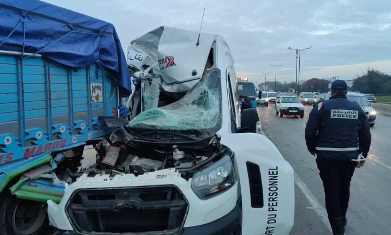 حادثة اصطدام شاحنة بحافلة لنقل العمال بالبيضاء تخلف خسائر مادية فادحة