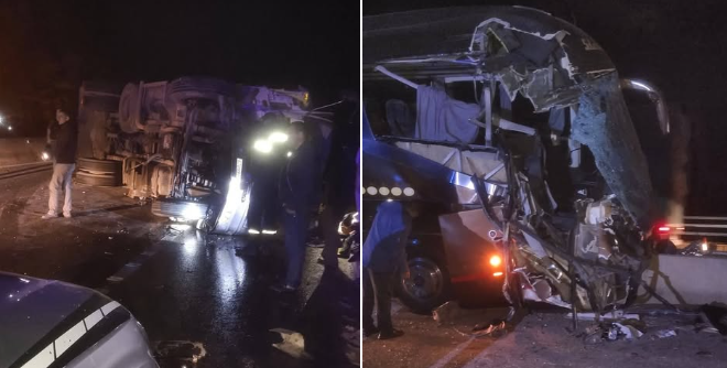 حادث اصطدام حافلة بشاحنة بواد أمليل يخلف 25 مصاباً