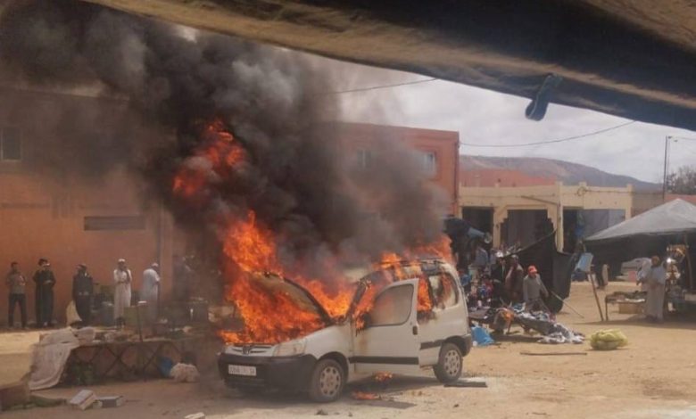 حريق هائل يلتهم سيارة بالسوق الأسبوعي في أيت ميلك!