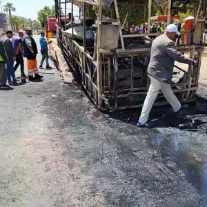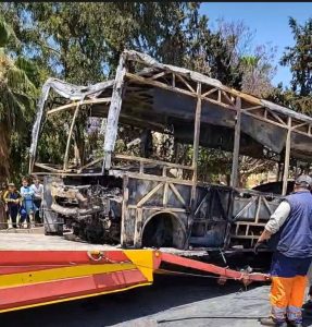 هذا و قد تمكنت الوقاية المدنية من إخماد الحريق الذي أصاب هيكل الحافلة في حين عملت المصالح الأمنية على تأمين موقع الحريق و منع السير  بالشارع المذكور حفاظا على سلامات العربات.