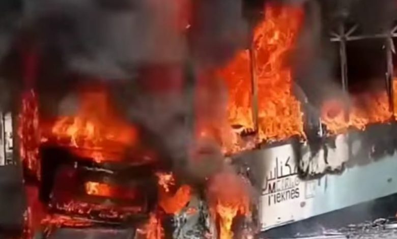 إندلاع حريق بحافلة النقل الحضري بمكناس يتسبب في إحتراقها بالكامل