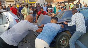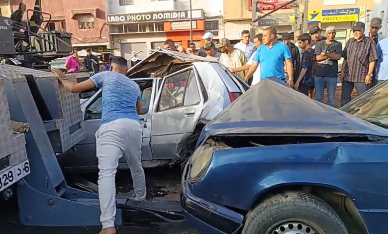 حادث سير خطير بسيدي مومن إثر انحدار سيارة واصطدامها بعدة مركبات وآليات أشغال