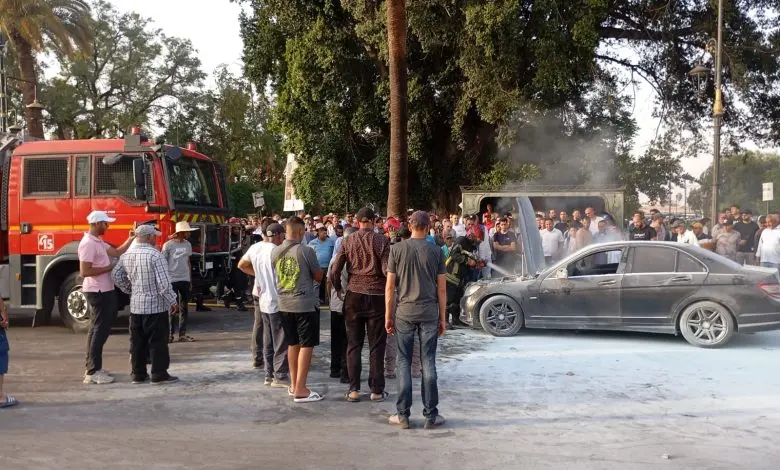 حريق بسيارة وسط ساحة جامع الفنا يستنفر الأجهزة الامنية