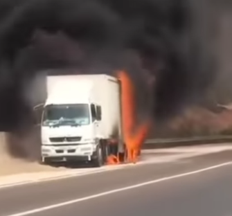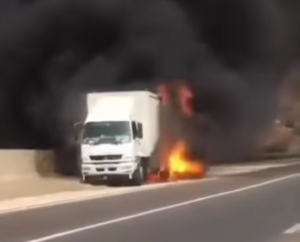 اشتعلت النيران بشاحنة بالطريق السيار على مستوى أمسكرود يوم امس الله يحفظ الجميع.