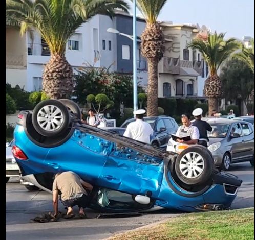 انقلبت سيارة بالقرب من الكليات بالمحمدية يوم امس و نجاة سائقتها باعجوبة و الأمن الوطني يدخل على الخط لتنظيم حركة المرور و ازالة السيارة من الشارع بواسطة سيارة الجر فمرة يرجي من السائقين توخي الحيطة و الحذر و التخفيف من السرعة و الالتزام بقانون السير من اجل السلامة العامة لجميع مرتفقي الطريق.
