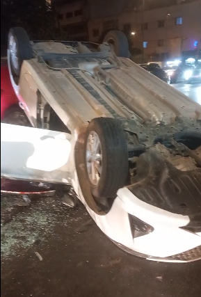 حادثة سير خطيرة تتسبب في انقلاب سيارة و نقل الركاب الى قسم المستعجلات بالدار البيضاء