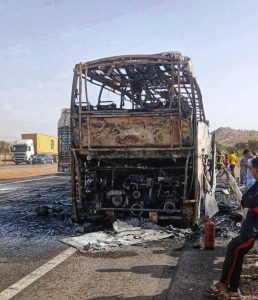 تعرضت حافلة قادمة من الدار البيضاء في اتجاه مراكش لاندلاع حريق بشكل مفاجئ مما ادى الى احتراقها بشكل كامل ، هذا و لحسن الحظ لم تُسجَّل أي إصابة في صفوف الركاب.
