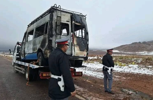 ورزازات… اندلاع حريق مفاجئ في حافلة تقل فريقًا كرويًا بطريق تزناخت