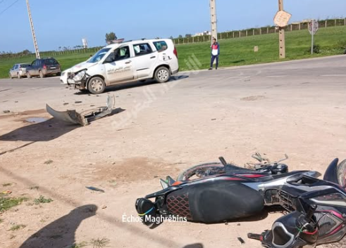 اصطدام خطيير بين سيارة إسعاف ودراجة نارية بالسوالم الطريفية