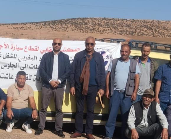 قام الكاتب العام للنقابة الوطنية لمهنيي ومهنيات سيارات الأجرة umt السيد الصديق بوجعرة بزيارة تضامنية للمعتصمين من مهنيي سيارات الأجرة بجماعة رأس العين بإقليم سطات لمدة 6 ايام بسبب “كورتي”,مفروض بالقوة والعنف ضدا على القانون و الأعراف و بحماية قائد قيادة راس العين وامام مرأى ومسمع من السلطات الإقليمية لعمالة سطات .