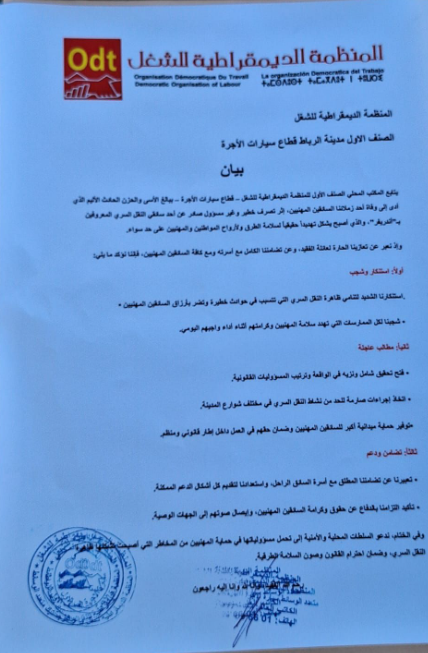 الرئيسية/قضايا المهنيين/نقابة ODT TAXI بالرباط ..خاص وزاره الداخليه اتفك هذا المشكل ديال تطبيقات لخدامين بدون رخصه نقابة ODT TAXI بالرباط ..خاص وزاره الداخليه اتفك هذا المشكل ديال تطبيقات لخدامين بدون رخصه طاكسي بريسمنذ 17 ساعة0 89 أقل من دقيقة شاركها فيسبوك تويتر ماسنجر ماسنجر واتساب مشاركة عبر البريد طباعة طاكسي بريسمنذ 17 ساعة0 89 أقل من دقيقة شاركها فيسبوك تويتر ماسنجر ماسنجر واتساب مشاركة عبر البريد طباعة
