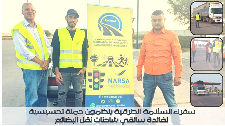 بشراكة مع الوكالة الجهوية للسلامة الطرقية لجهة الدارالبيضاء سطات، وتعاون وتنسيق من شركة Sahara logistique، وترخيص عناصر الدرك الملكي المتواجدة بمحطة الأداء تيط مليل ، نظمت جمعية سفراء السلامة الطرقية حملة تحسيسية توعوية لفائدة سائقي شاحنات نقل البضائع، بتاريخ 10 أبريل 2023، بمحطة الاداء تيط مليل. تركزت بالأساس حول مخاطر التعب وقلة النوم المؤدية للغفوة، وما ينتج عن ذلك من حوادث خطيرة. هذا، وقد رافقت الحملة توزيع مطويات خاصة بالموضوع مقدمة من الوكالة الوطنية للسلامة الطرقية ، بالإضاقة إلى توزيع وجبة إفطار ، على السائقين المهنيين ومرافقيهم.
