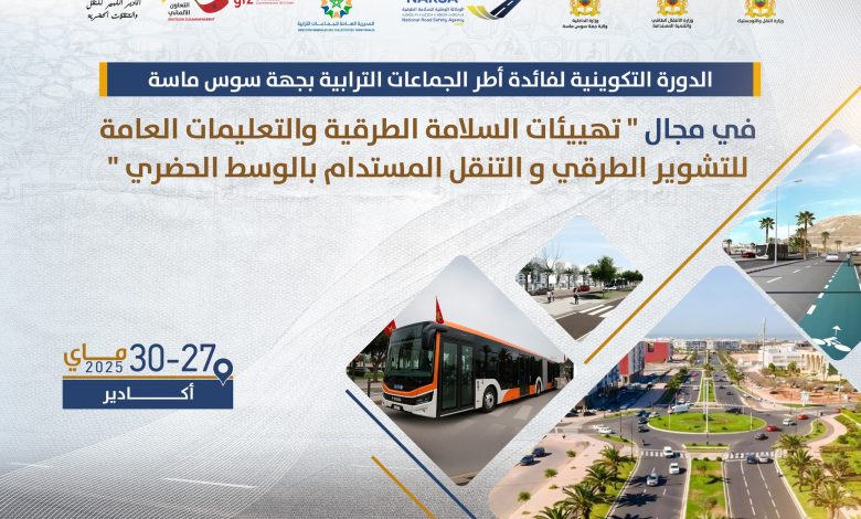 دورة تكوينية بأكادير من 27 إلى 30 ماي 2025 في مجال ” التهيئات المتعلقة بالسلامة الطرقية والتنقل المستدام والتعليمات العامة للتشوير الطرقي بالوسط الحضري “