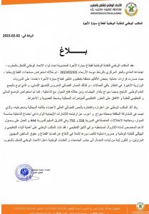 بلاغ حول نتائج اجتماع المكتب الوطني للنقابة الوطنية لقطاع سيارة الأجرة ل untm
