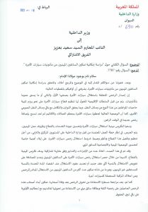 في تدوينة للسيد عبد العزيز الداودي الكاتب العام للاتحاد النقابي للنقل الطرقي على الصفحة الرسمية على الفايسبوك يشكر فيها النائب البرلماني سعيد بعزيز عن مدينة كرسيف والذي طرح سؤالا كتابيا على وزير الداخلية حول امكانية استفادة مهنيي سيارات الأجرة من المأذونيات وحول اعتراض مهنيي سيارات الأجرة على المقتضى المتعلق بتوقيف المركبات اثناء هلاك مالكي المأذونيات او تعذر تحويلها لذويهم والمتضمن في الدورية الوزارية رقم 750. و اعتبر السيد عبد العزيز الداودي انه للاسف ان جواب وزير الداخلية لم يرقى إلى ما نطمح إليه برفضه لسحب المأذونيات من الميسورين ورجال الاعمال والقاصرين بمبرر ان ذلك يتعارض مع المقتضيات القانونية مضيفا ان جواب وزير الداخلية تطرق إلى إمكانية تقديم مهنيي سيارات الأجرة لطلبات للاستفادة من رخص النقل المزدوج والنقل السياحي.