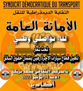 النقابة الديمقراطية للنقل S.D.T تقرر عقد لقاء تواصلي وطني باكادير