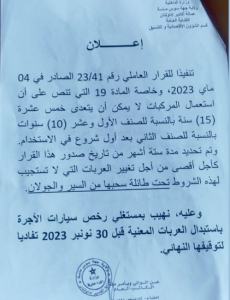 الرئيسية/أخبار الطاكسي/عمالة اكادير تحدد 30 نونبر 2023 كاخر اجل لاصحاب السيارات القديمة من الصنفين لاستبدالها تفاديا لتوقيفها نهائيا عمالة اكادير تحدد 30 نونبر 2023 كاخر اجل لاصحاب السيارات القديمة من الصنفين لاستبدالها تفاديا لتوقيفها نهائيا طاكسي بريسأكتوبر 19, 20230 806 أقل من دقيقة شاركها فيسبوك تويتر ماسنجر ماسنجر واتساب مشاركة عبر البريد طباعة طاكسي بريسأكتوبر 19, 20230 806 أقل من دقيقة شاركها فيسبوك تويتر ماسنجر ماسنجر واتساب مشاركة عبر البريد طباعة