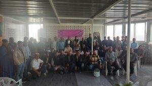 بعد كلمة السيد أحمد صابر الكاتب الوطني لنقابة UGTM TAXI و التي تناول فيها مختلف القضايا المهنية المحلية و الجهوية في علاقتها بالمستجدات الوطنية و التطرق لما يتخبط فيه قطاع النقل بواسطة سيارات الاجرة سواء محليا او جهويا او وطنيا مشددا على اهمية جمع الشتات و تعبئة المهنيين و المكاتب المحلية والإقليمية للجهة حتى يتسنى لهم تحقيق المطالب العادلة و المشروعة للعاملين بالقطاع بالجهة .