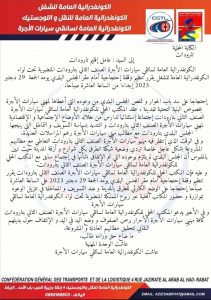 CGT TAXI للصنف الثاني بتارودانت تقرر تنظيم وقفة احتجاجية يوم 29 دجنبر 2023 امام مقر جماعة تارودانت لهذه الاسباب