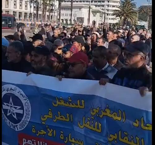 في اطار الاحتجاج كل يوم خميس من الاسبوع نظم السائقون المهنيون العاملون بقطاع النقل بواسطة سيارات الاجرة المنتسبون للنقابة الوطنية لمهنيات و مهنيي سيارات الأجرة المنضوية تحت لواء الإتحاد المغربي للشغل و بحضور السيد الصديق بوجعرة الكاتب الوطني لنقابة UMT TAXI و رئيس الاتحاد النقابي للنقل الطرقي وقفة إحتجاجية يوم الخميس 01 فبراير 2024 أمام ولاية جهة الدار البيضاء – سطات ردد فيها المحتجون عدة شعارات تطالب السلطات المعنية بالنقل بولاية جهة الدار البيضاء – سطات بالتدخل لحماية الحقوق المهنية و الاجتماعية و صون الحق في العمل و استدامته و تحقيق العدالة الاجتماعية و العيش الكريم .