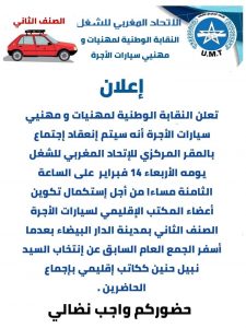 الرئيسية/أخبار الطاكسي/بعد انتخاب السيد نبيل حنين كاتبا اقليميا لنقابة UMT TAXI الصنف 2 بالدار البيضاء ..جمع عام يوم 14 فبراير بمقر النقابة بالدار البيضاء لاستكمال هيكلة المكتب بعد انتخاب السيد نبيل حنين كاتبا اقليميا لنقابة UMT TAXI الصنف 2 بالدار البيضاء ..جمع عام يوم 14 فبراير بمقر النقابة بالدار البيضاء لاستكمال هيكلة المكتب طاكسي بريسفبراير 14, 20240 232 أقل من دقيقة شاركها فيسبوك تويتر ماسنجر ماسنجر واتساب مشاركة عبر البريد طباعة طاكسي بريسفبراير 14, 20240 232 أقل من دقيقة شاركها فيسبوك تويتر ماسنجر ماسنجر واتساب مشاركة عبر البريد طباعة