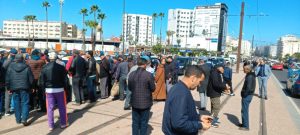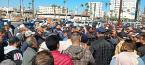 احتجاجا على قرارات تشريد المهنيين العاملين بقطاع النقل بواسطة سيارات الاجرة و حرمانهم من حقهم المشروع في العمل و استمراريته و تعريضهم للبطالة و الحرمان من مصدر عملهم الوحيد لاعالة اسرهم نظم  التنسيق النقابي الوطني الخماسي البيضاوي وقفة احتجاجية حاشدة يوم  الأربعاء 6 مارس 2024 امام مقر ولاية جهة الدار البيضاء – سطات للمطالبة بفتح باب الحوار لايقاف تشريد المهنيين و المطالبة بالتنزيل السليم للتدابير الجديدة المتضمنة في للدوريات الوزارية 336 و 444 و 750 و حماية الحقوق المهنية و الاجتماعية للمهنيين العاملين في قطاع النقل بواسطة سيارات الاجرة في إنتظار المعركة القادمة امام الملحقة الادارية لوزارة الداخلية بالرباط المكلفة بملف النقل بواسطة سيارات الاجرة .