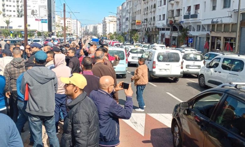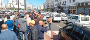التنسيق النقابي الوطني الخماسي البيضاوي الممثل للطاكسيات يحتج امام مقر ولاية جهة الدار البيضاء للمطالبة بايقاف تشريد المهنيين