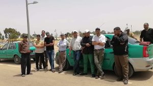 مهنيو الطاكسيات الصغيرة بجرسيف يحتجون أمام العمالة للمطالبة بتوفير محطة خاصة بهم قرب السوق الأسبوعي