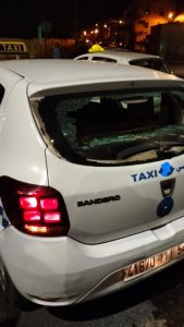 قام أحد الجانحين بمدارة الكورس باسفي باعتراض سبيل مستعملي الطريق و منهم سيارات الأجرة التي تعرضت للرشق بالحجارة حيث أصيب السائق بجرح على مستوى الرأس وكذلك إصابة سيارات الأجرة بخسائر مادية .